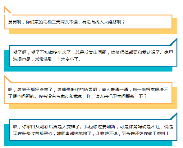 一旦出了问题,大家都会在第一时间找人来修理,可索性一次修好那也到罢了,但是现实往往很残酷,旧小区由于不断老化,很多问题出现在根源上,往往不是疏通一下、换个零件就能解决的。长期生活在这样的环境下,可以说是苦不堪言了,原本和气的邻里也有不少变得“反目成仇”。 于是,我决定就此问题,坐下来和舅舅好好聊聊。