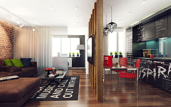 年轻人总是充溢使不完的奋发向上,当他们跟家居相遇的时候,大开的脑洞就像水库开闸奔腾不止。一切你觉得新潮的元素他们都能运用到家居规划中,一些你觉得匪夷所思的东西他们也相同敢用。开放式的室内格式早已没了新鲜感,但脑洞大开的年轻人规划出来的开放式小户型,必定让你意想不到。