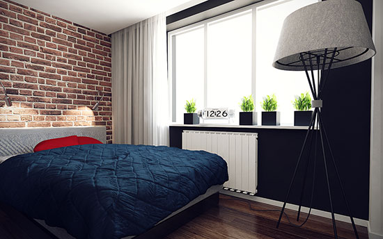 让咱们把视野挪移挪,看到客厅里那个半透明的隔断墙了吗?它背面也暗藏玄机,一个卧室居然在里面。半透明间隔确保了卧室具有满足光线,而窗帘则能更好地维护隐私。别看这间卧室不大,可说道的东西不少。客厅复古砖墙一向连续到了这儿,带窗一面的墙居然被刷成了黑色,真是好大的胆子!赤色的枕头,绿色的盆栽,这些颜色尽管反差挺大,但搭配起来竟十分调和。