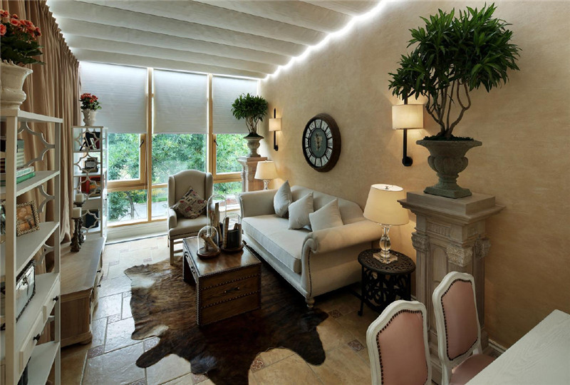 二、 1.用壁灯营造高雅 在美式风格的家居中壁灯算是比较常见又很实用的装饰品了。古典造型的壁灯或落地灯,营造出的昏暗灯光,搭配深色系的家具,能够给整个客厅营造出贵气高雅的氛围。 2.用仿古艺术品体现文化 卷边的古旧书籍、金属质地的动物雕像,锡铅合金烛台等等,这些造型独特又富有质感的仿古艺术品,搭配起来让人一眼就能体会到深邃的文化气息。 3.用绿植打造层次 最能在美式风格软装中体现自然惬意的,应该当属绿植了。美式风格一般会选用终年常绿不开花的植物,如:文竹、仙人掌、龟背竹、常青藤等,放在家里的地面、柜面、桌面上,形成错落有致的格局和层次感。